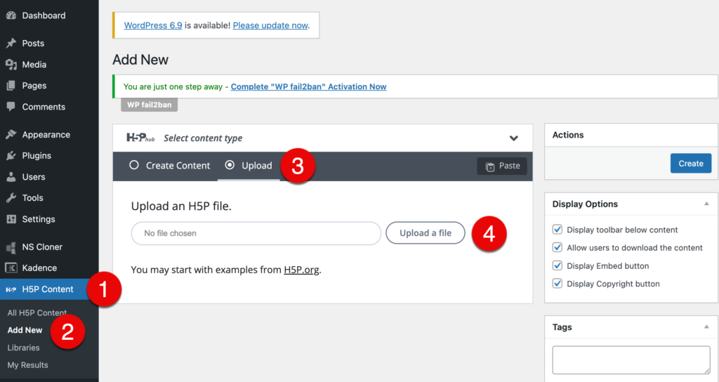 WordPress makes it straightforward to add H5P content to your site. If you’ve already created an H5P file on another platform or Lumi, you can upload it directly to WordPress and embed it in any page or post. The following written instructions will guide you through the upload process.